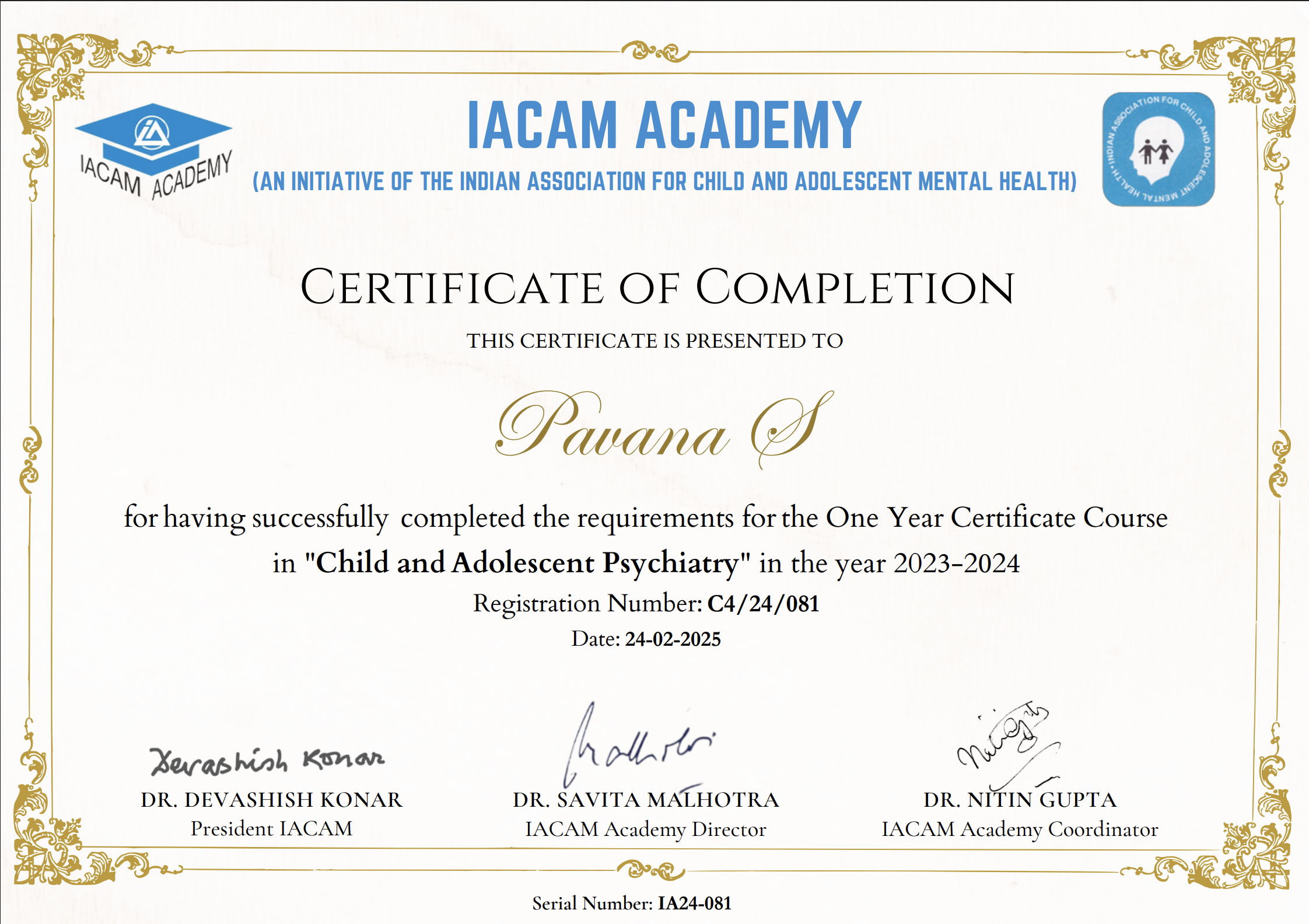 Specialized publications from NHCA Singapore and IACAM in Child and Adolescent Psychiatry enabling her to provide comprehensive mental fitness care to youngsters and teens